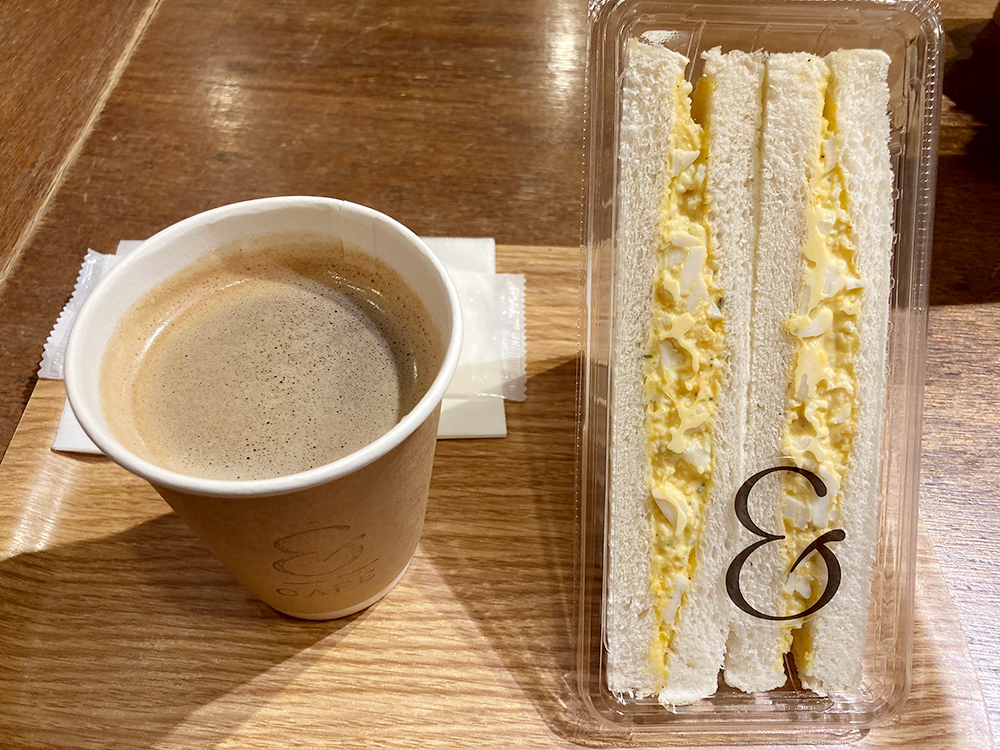 アンドカフェさんのたまごサラダサンドをコーヒーと共に